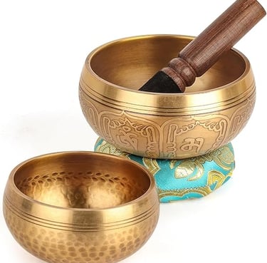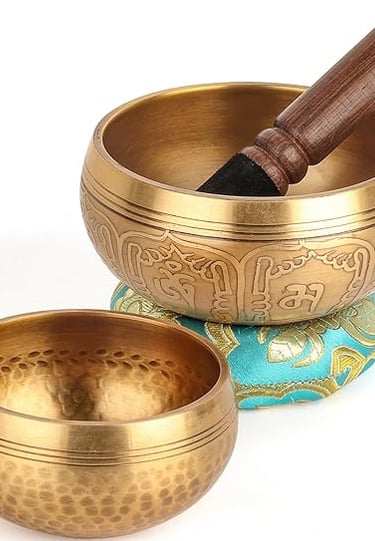 These singing bowls are crafted in Nepal, reflecting deep cultural and historical significance.